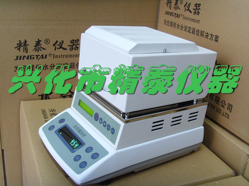 JT-120鹵素快速水分測定儀是一種新型高精度的快速水分檢驗儀器,采用熱解重量原理設計的,儀器測量樣品重量同時,鹵素加熱單元和水分蒸發通道快速干燥樣品。在干燥過程中,儀器持續測量并即時顯示干燥過程中樣品丟失的水分含量%,干燥完成后,更加終測定的水分含量鎖定,按顯示鍵可觀察水分值,重量初始值,起始值,測試時間等數據。與傳統的烘箱加熱法相比,鹵素加熱可在短時間達到很大加熱功率,在高溫下樣品快速被干燥,加快了測量時間。一般樣品只需幾分鐘即可完成,其檢測結果與國標烘箱法具有良好的一致性,具有可替代性。泰州市精泰儀器儀表有限公司始終立志于為用戶提供多用途,多性能的高品質產品,為您打造快速、準確、物超所值的水分測定儀典范。